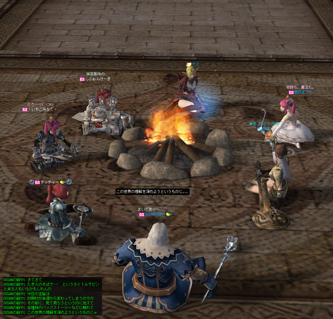 にならって、こうしてたき火を囲むところからイベントをスタートしますの。